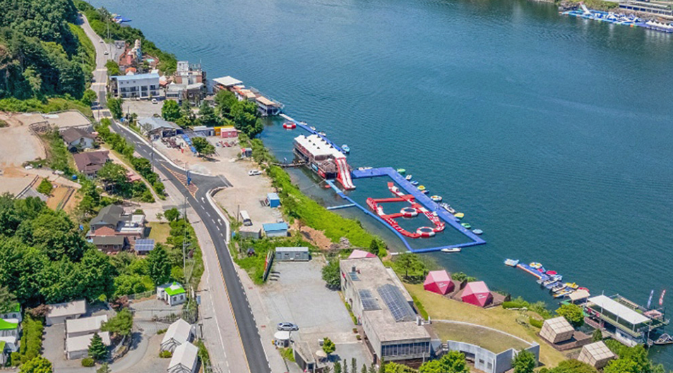 캠핑장 바로 앞에 계곡이 흐르고 뒤로는 명지산이 자리잡고 있어서 자연 경관이 정말 아름다워요. 전용 수영장, 트램플린, 서바이벌 및 사륜바이크 등 액티비티가 풍부해요.