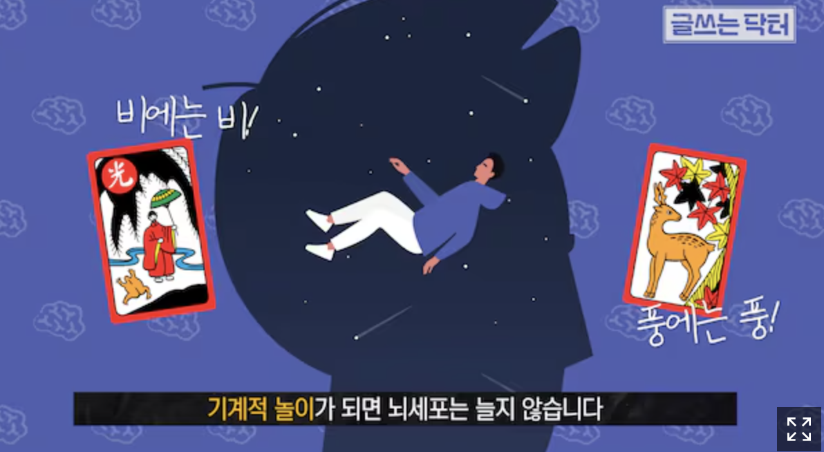 치매예방에 좋다고해서 "바둑과 고스톱"을 오랫동안 했지만 70세에 치매 판정을 받은 경우가 있는데요. 고스톱을 배우고 익힐 때는 뇌세포가 늘어나지만 "반복적인 기계적 놀이가 되면 뇌세포는 늘지 않아요". 오히려 움직이지 않고 오래 않아 있어서 치매가 더 잘 걸릴수도 있습니다. 뇌를 깨우기 위해서는 "새로운 지식을 습득하고 근육을 늘리는 뇌 운동"을 해야 100세까지 총명한 뇌를 유지합니다.