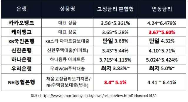 국민은행의아파트담보대출금리는고정금리와변동금리로구분됩니다.고정금리는대출기간동안일정하게유지되며,변동금리는기준금리에따라변동할수있습니다.현재KB국민은행의아파트담보대출금리는약3.68%에서시작하고,변동금리는4.32%부터시작합니다.