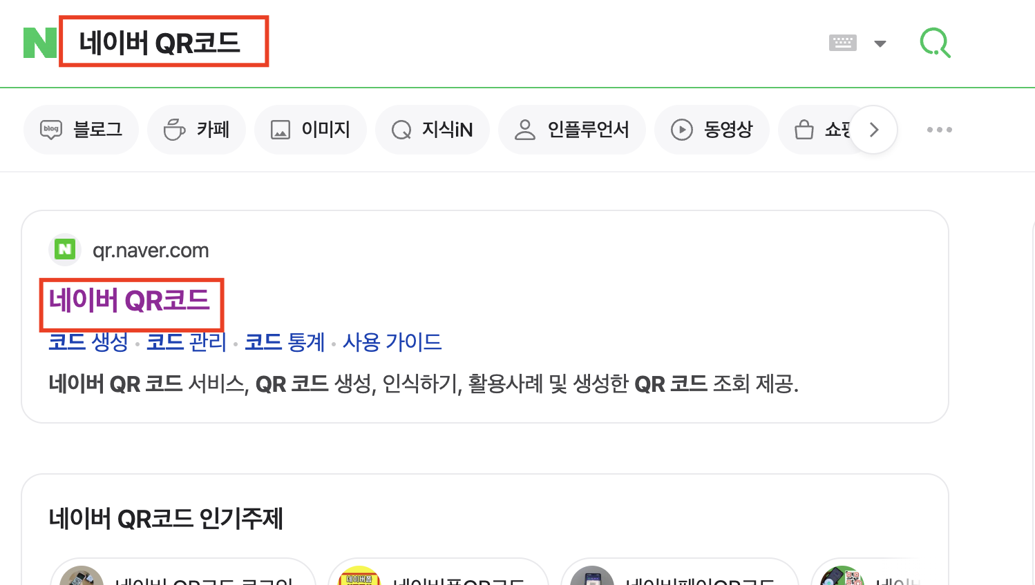 1. 검색창에 "네이버 QR코드"를 입력 후 사이트로 이동합니다.