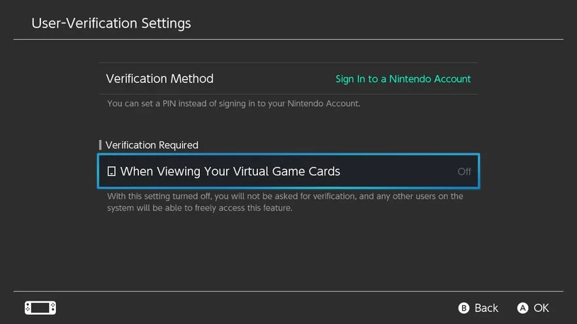 가상 게임 카드 잠금은 고급 보안 기능이에요. 여러 계정이 등록된 기기에서 다른 사용자가 내 게임에 접근하는 것을 막고 싶다면, 사용자 설정 → 사용자 인증 설정에서 세밀하게 조정하세요. 닌텐도 eShop 로그인이나 가상 게임 카드 열람 시 추가 인증을 요구하도록 설정할 수 있어요.