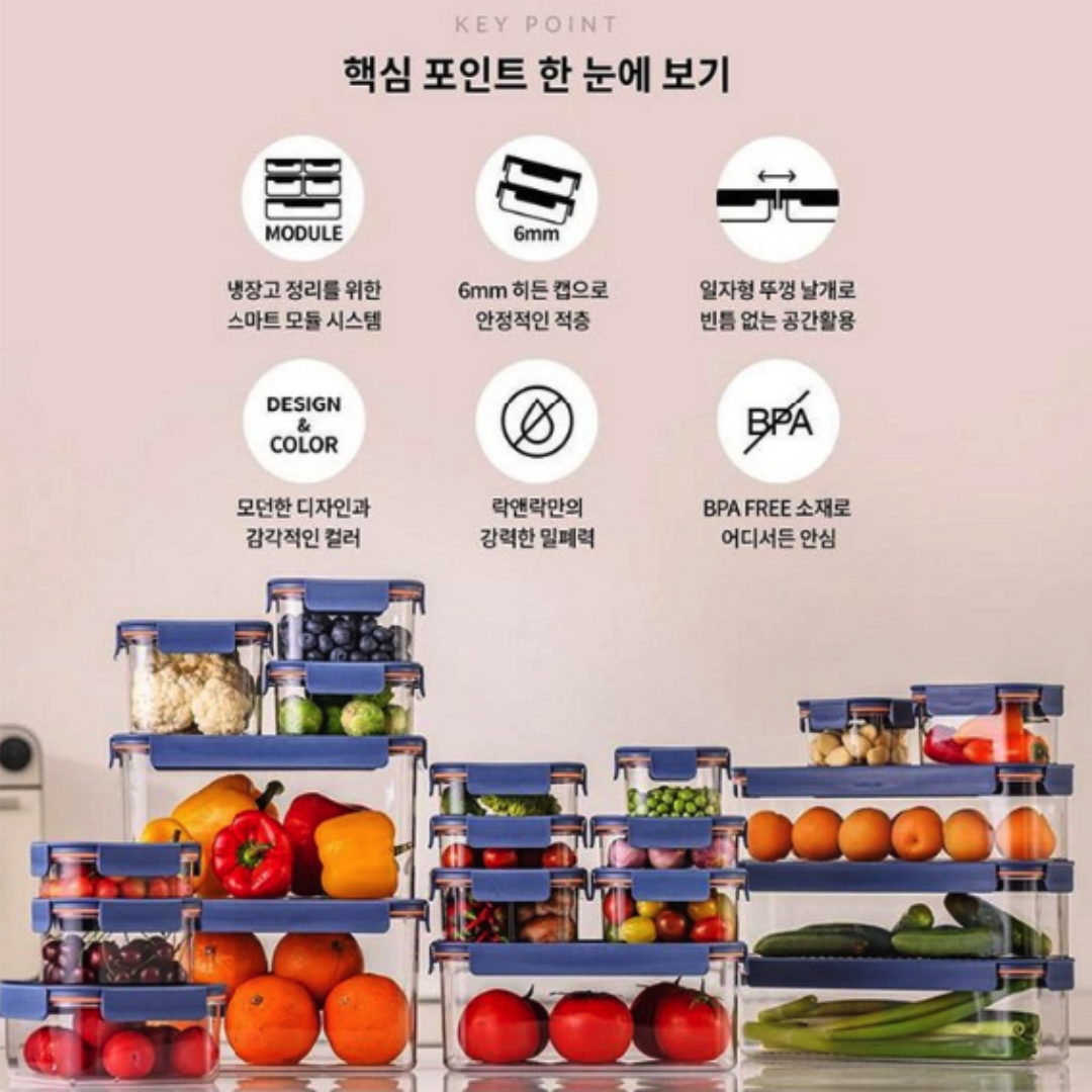 락앤락 비스프리 모듈러는 열과 냉에도 강하고 냄새 배임 걱정 없는 고품질 소재에 6mm 히든캡으로 냉장고 정리를 쉽고 깔끔하게 만들어주는 정말 실용적인 밀폐용기예요.