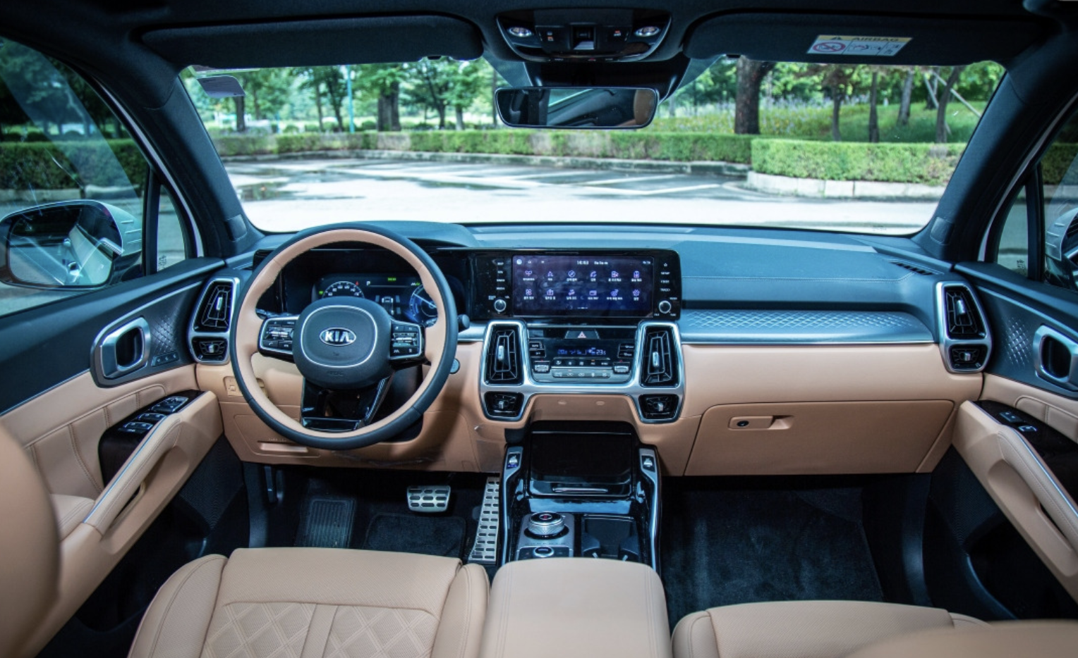 쏘렌토도 최근 모델은 실내 품질이 많이 올라왔어요. 특히 하이브리드 모델은 시그니처 트림부터 가죽 시트와 우드 패널이 적용돼서 고급스러워요.
