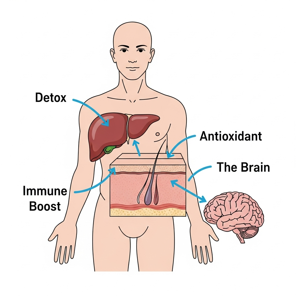 - 글루타치온은 체내 항산화·해독·면역에 핵심이며, 나이 들수록 농도가 감소합니다
