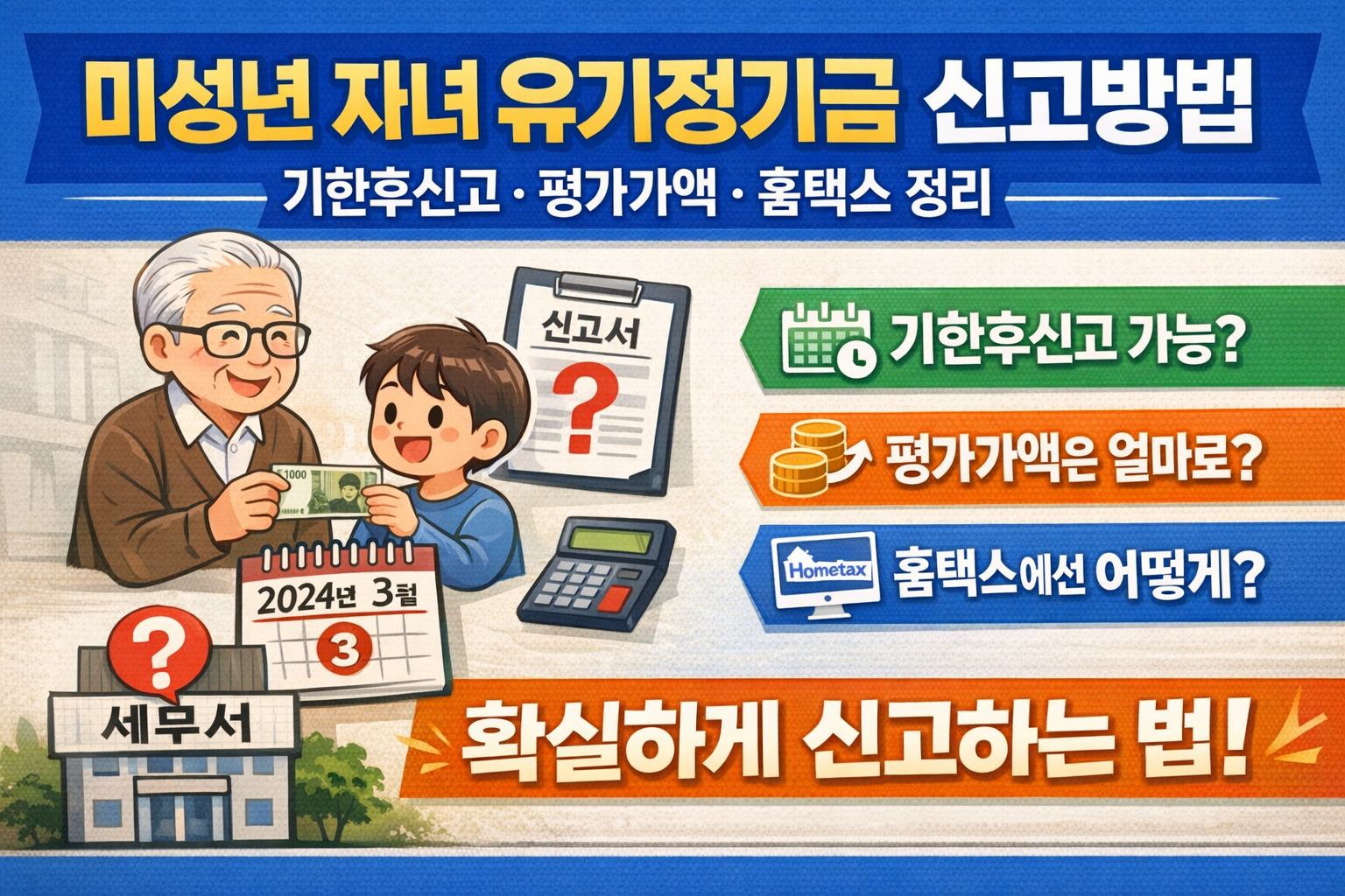 처음 한 번은 세무서에 사실관계를 설명하고 유기정기금 수급권 평가로 갈지 확인한 뒤 신고하는 방식이 가장 안전합니다. 홈택스에서 바로 안 풀릴수록 오히려 세무서 확인을 먼저 거치는 편이 시간을 줄여줍니다.