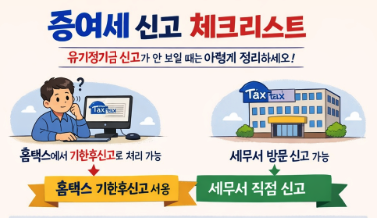 홈택스에서 유기정기금이라는 이름이 바로 안 보여도 증여세 신고와 기한후신고 자체는 계속 가능해요.