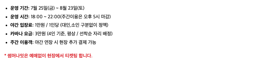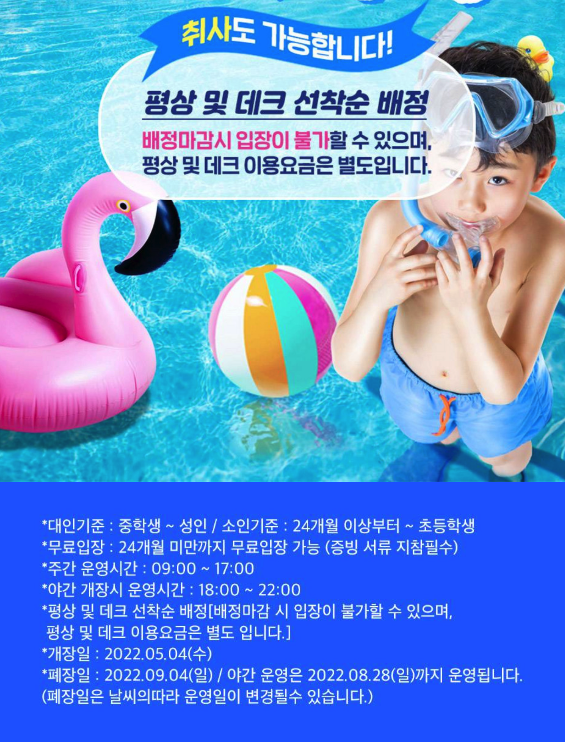 성수기 마지막날까지 야간개장하고 안전관리 및 편의시설이 우수해서 가족 단위로 오기에 딱 좋아요.