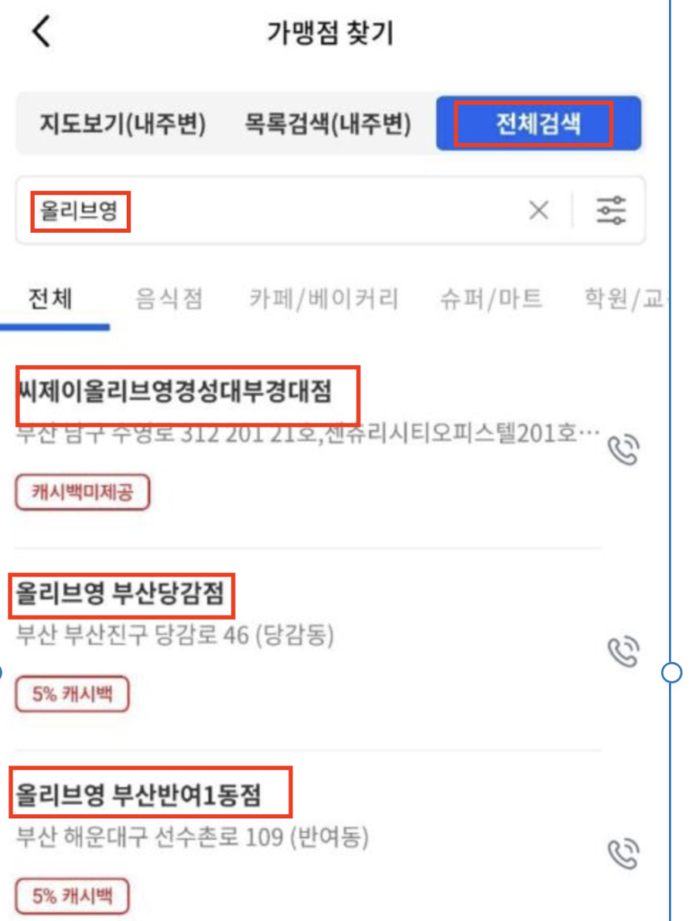 4단계: '전체검색'에서 '올리브영' 입력 후 검색