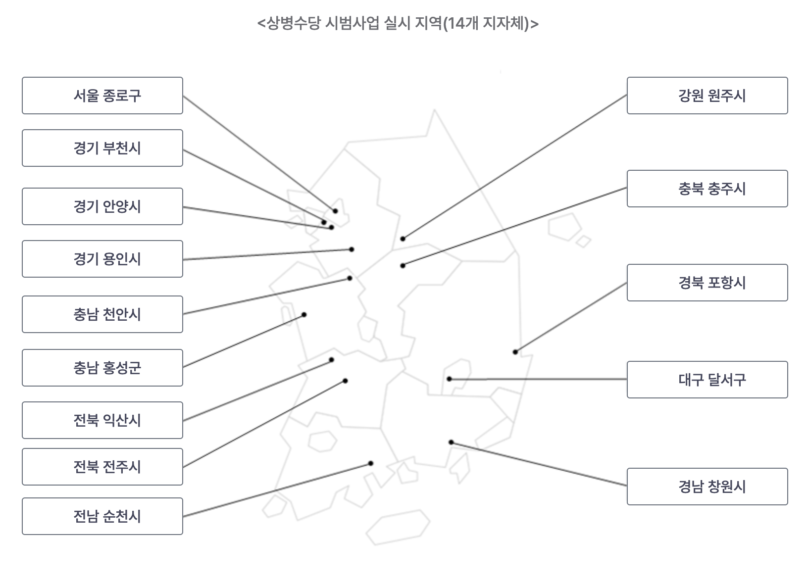 상병수당은 2024년 7월1일 부터 충주시, 홍성군, 전주시, 원주시가 추가되어서 "14개 지역"을 대상으로 시범사업을 진행하고 있는데요.