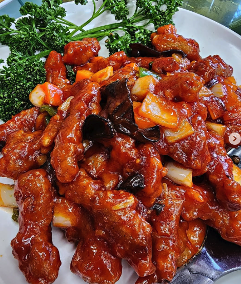 한줄평: "튀김의 바삭함과 고기의 촉촉함이 완벽하게 조화를 이루는 탕수육!"