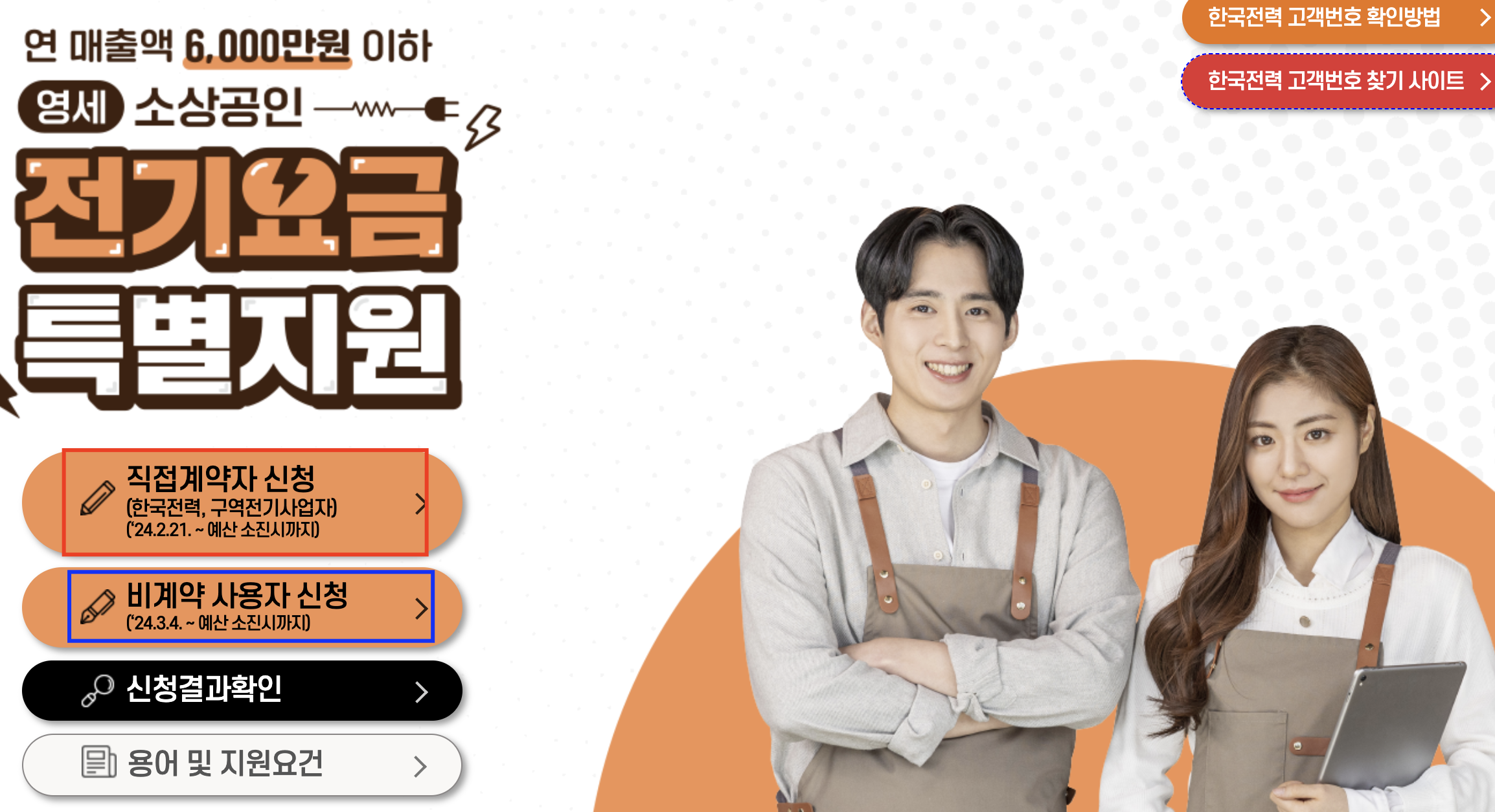 • 직접계약자(‘24.2.21.~예산 소진 시까지) : 한국전력(이하 구역전기사업자 포함)과 본인명의 계약을 맺고 있는 자