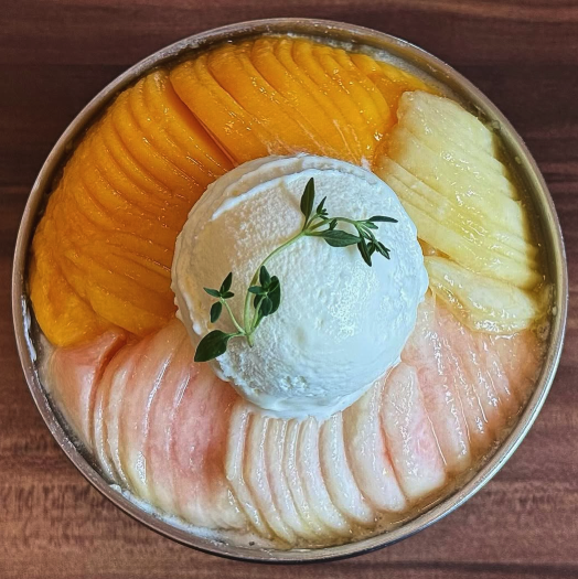 여름 한정다운 싱싱함이 일품이고 통통한 복숭아 과육이 씹는 맛을 극대화해줘요. 시원한 얼음과 부드럽게 으깬 복숭아를 한 숟갈에 올려 먹으면 제철 느낌이 제대로 나요.