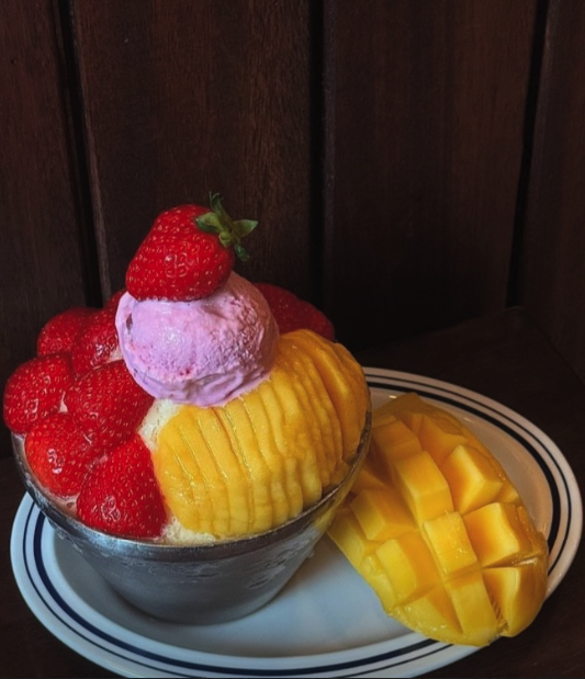 망고랑 딸기를 하나씩 번갈아 먹는 재미가 쏠쏠한 메뉴예요. 두 과일의 조합이 궁금하다면 살짝 욕심내서 한 숟갈에 같이 떠먹어보세요.