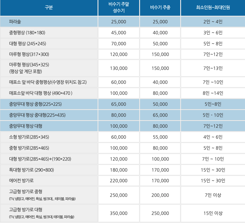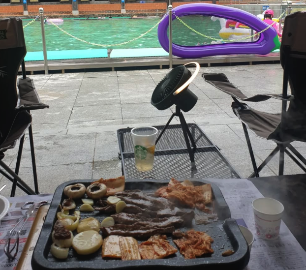 저는 가족 4명이서 중형 평상을 이용했는데요, 공간이 적당하고 안전해서 만족스러웠어요. 어린이 풀장과도 가까워서 아이들 관리하기 편했거든요.