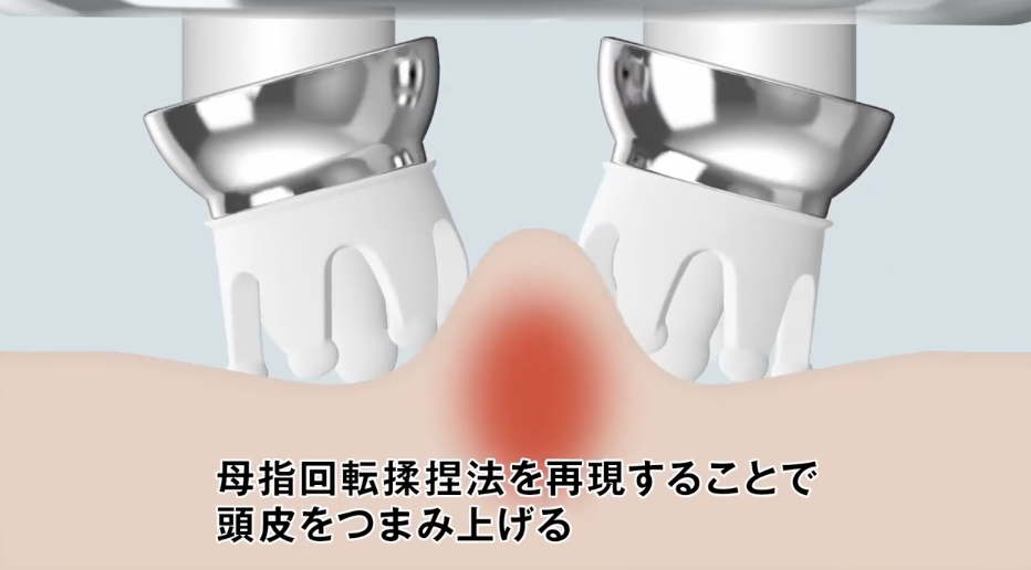 양쪽 압력 대비형 3D 구조가 포인트예요. 경사 설계된 4개 회전 볼이 좌우로 잡아당기듯 움직여서 입체감 있는 자극을 만들어내죠. 관자 부위에서 시작해 정수리로 천천히 이동하면 뭉침이 풀리는 걸 체감할 수 있어요.