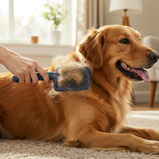 보호자님, 털은 매일 빠집니다. 빗질은 털 날림을 줄이는 가장 좋은 방법이에요.