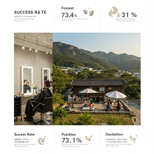미용실은 73.4%의 높은 생존율을 보이는 업종으로, 생활밀착형 서비스의 특성상 단골 고객 확보가 가능하다는 장점이 있습니다.