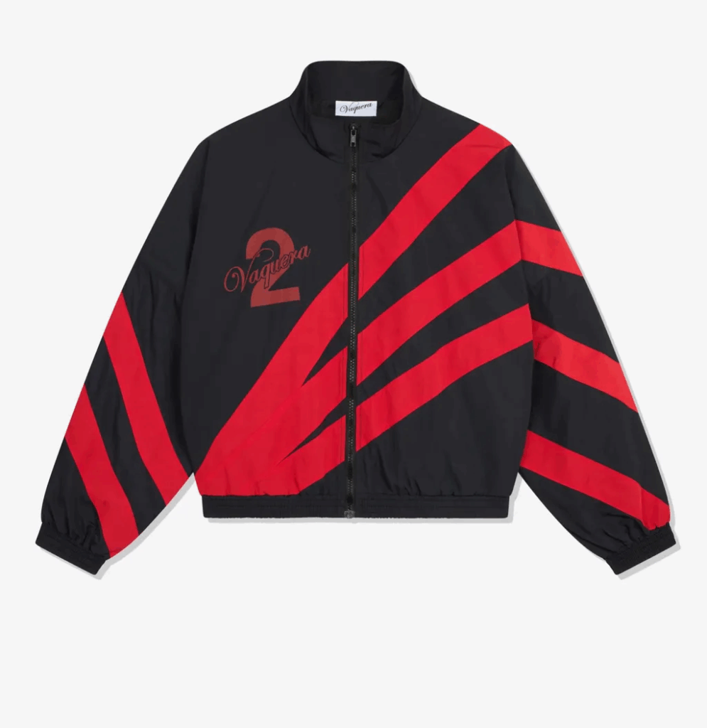 뉴욕 기반 스트리트 패션 브랜드 바퀘라(VAQUERA)의 WINDBREAKER BLACK RED 제품입니다. 2013년 설립된 브랜드로 독창적인 디자인으로 유명해요.