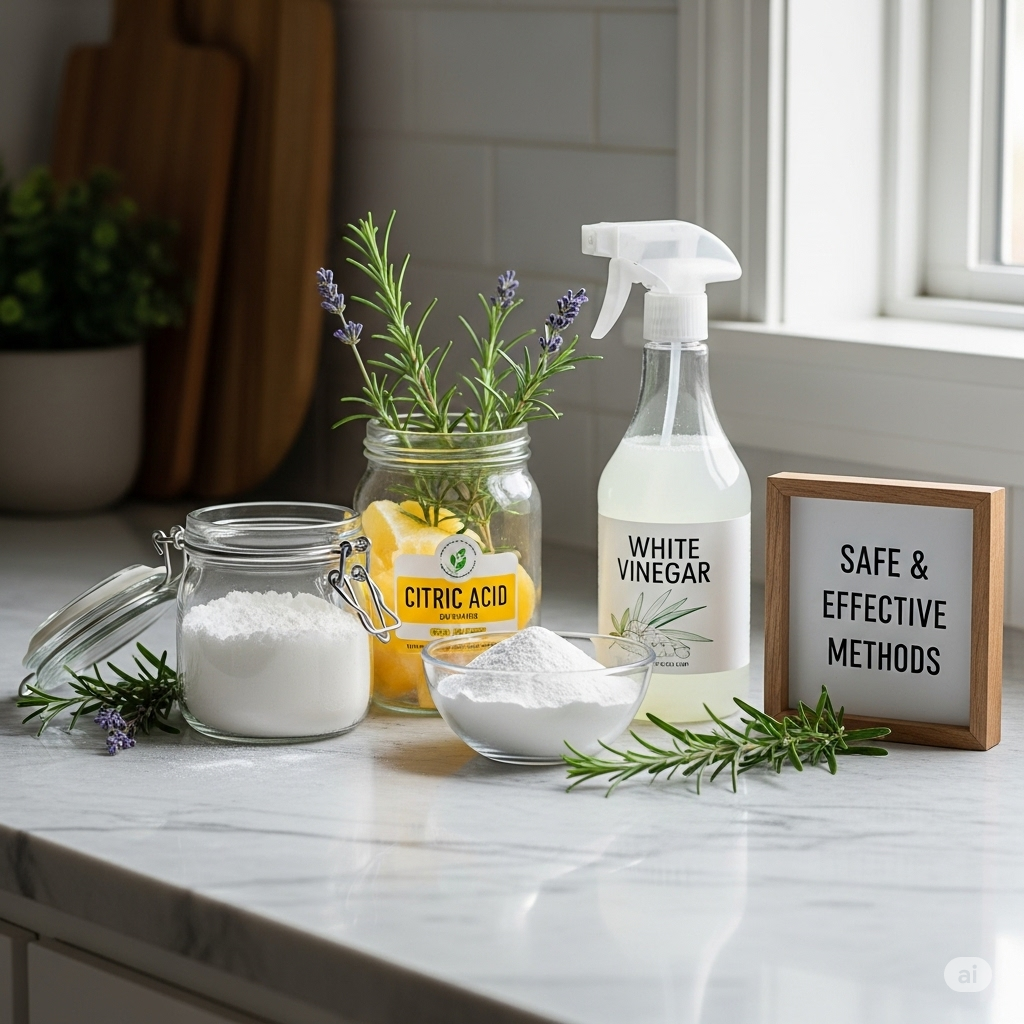 개인적으로는 구연산이 가장 효과가 좋았어요. 냄새도 별로 안 나고 헹구기도 쉽더라고요.