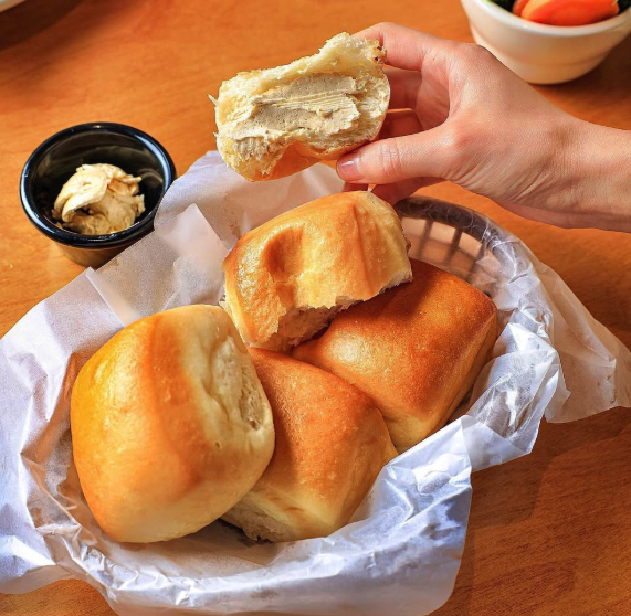 모든 매장에서 직접 구워내는 따끈하고 부드러운 빵을 무제한으로 무료 제공합니다. 달콤한 시나몬 버터와 함께 먹으면 그 자체만으로도 훌륭한 한 끼가 될 정도입니다.