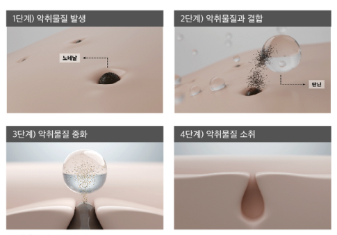 - 향으로 덮기보다 냄새 유발 물질 세정과 소취를 강조했습니다