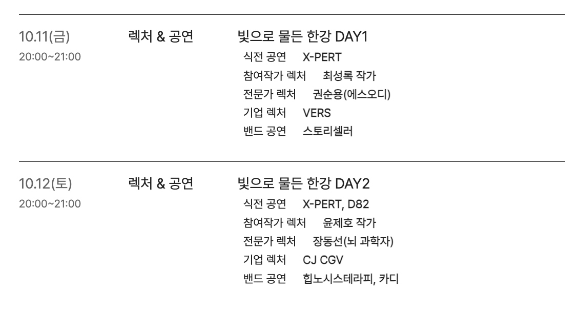 관람시간 : 2024. 10. 4.(금)~10. 13.(일) 19:30~22:30 (10일간)