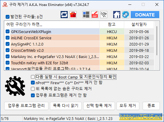 - 불필요한 보안 프로그램을 쉽게 삭제 – 클릭 한 번으로 정리 가능