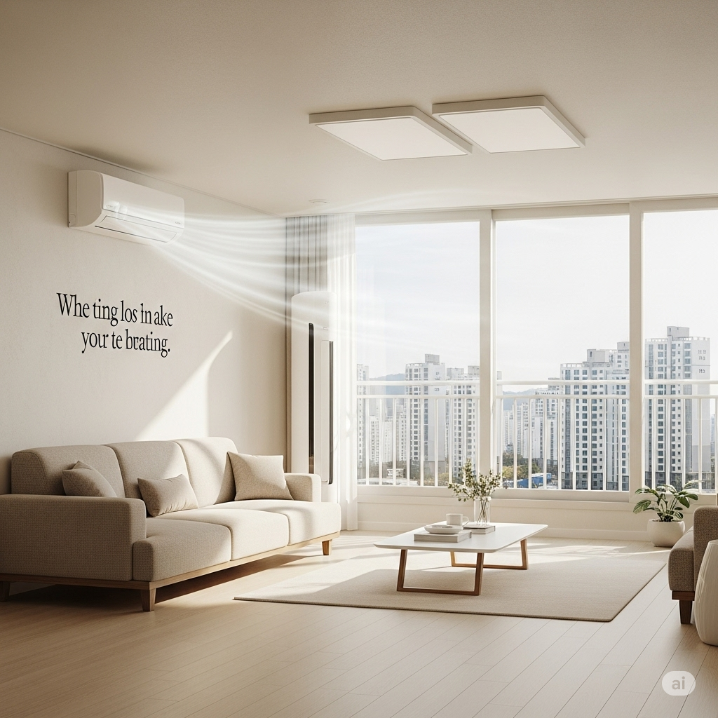 에어컨 앞 공간을 최대한 비우고 바람이 멀리 퍼질 수 있도록 가구를 배치하세요. 저는 이것만으로도 냉기 순환이 확실히 달라지는 걸 느꼈어요.