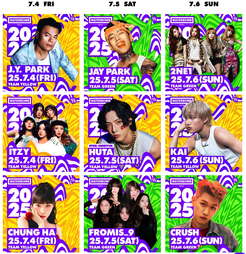 특히 2NE1 완전체 무대나 JAY PARK의 워터밤 퍼포먼스 같은 건 정말 레전드급 무대가 될 것 같습니다. 몬스타엑스, 청하, 이영지 등 각 도시별로 차별화된 라인업도 각각의 매력이 있습니다.