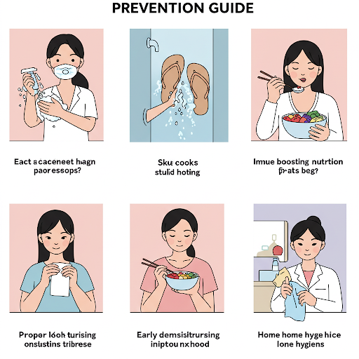 - 피부 건조 유지: 특히 손과 발을 깨끗하고 건조하게 유지하기