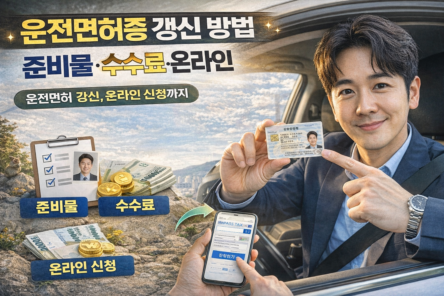 무엇보다 갱신일자를 놓쳐서 사고시 무면허 불이익이 없도록 사전에 준비하시길 바랍니다.