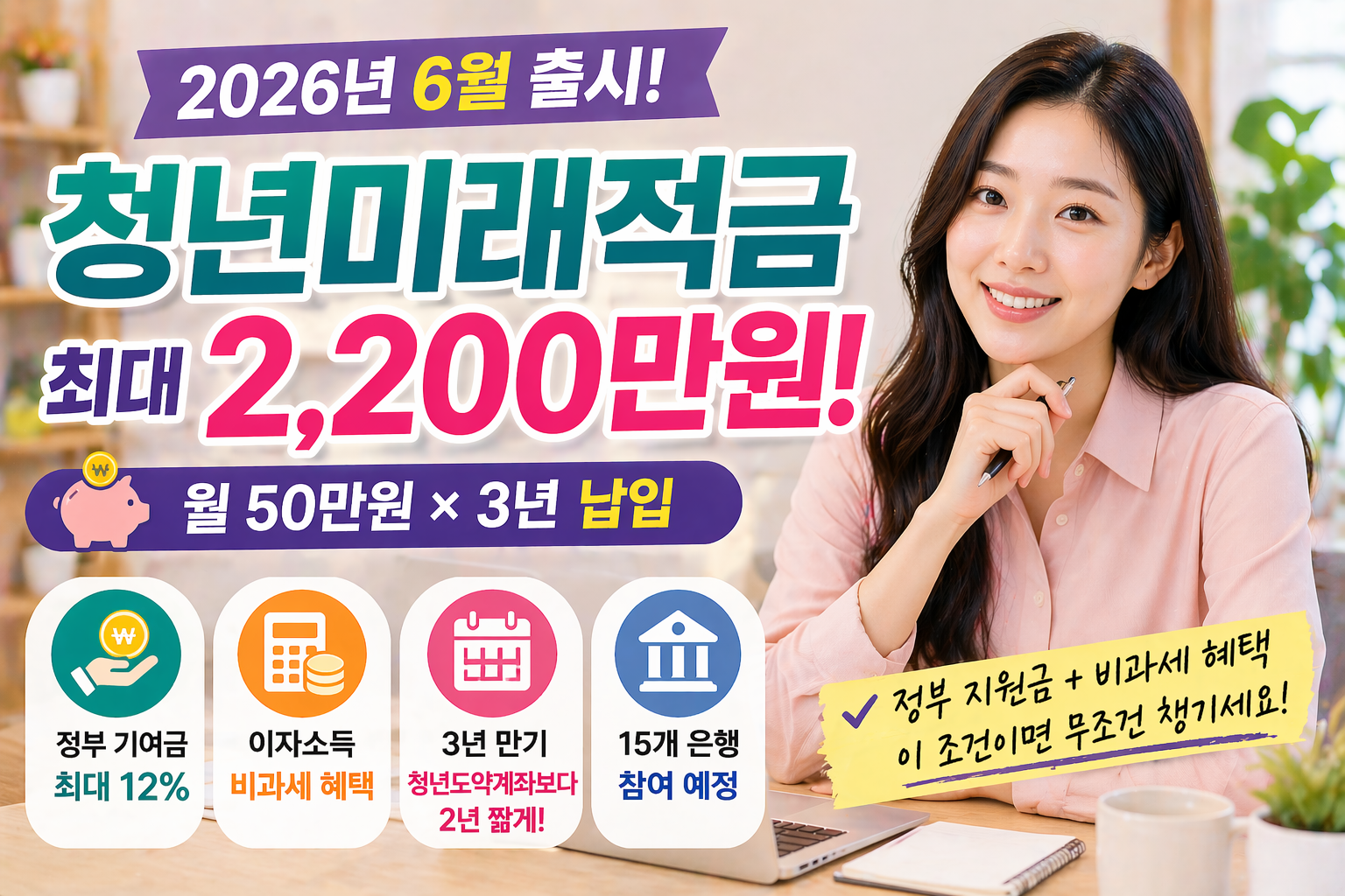 2026 청년미래적금 완벽 정리 - 月50만원 3년이면 2,200만원, 6월 딱 한 번 기회 놓치면 12월까지 기다