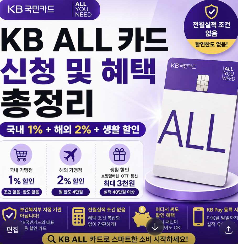 #KB ALL카드 #KB국민카드혜택 #범용할인카드추천 #메인카드추천 #전월실적없는카드